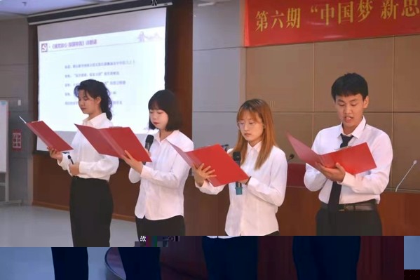 學習沙龍的最後由餘小祥、陳昕悅、呂金朋、楊露四位領誦人帶領全體黨員朗誦《請黨放心,強國有我》。铮铮誓言響徹整個報告廳,實現中華民族偉大複興的中國夢後繼有人、指日可待!