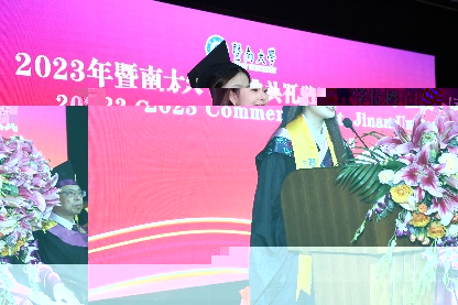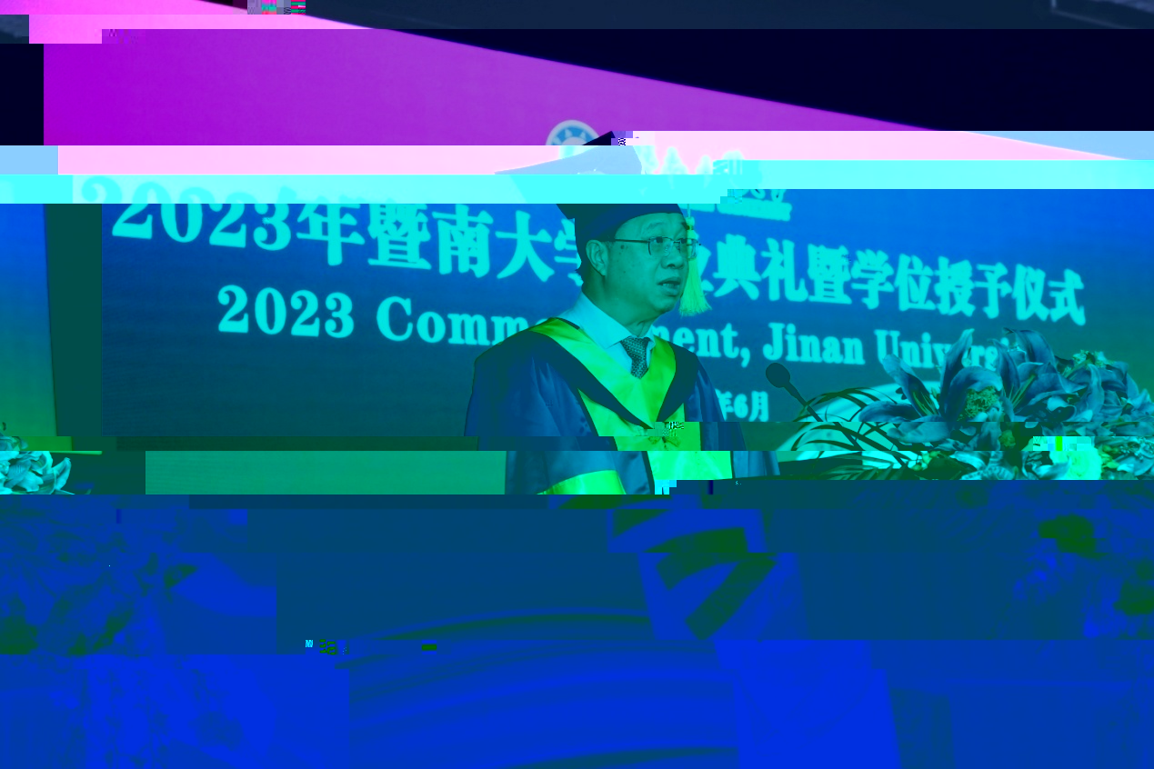 宋獻中向順利完成學業的全體畢業生表示熱烈祝賀。他在緻辭中回望了2023屆畢業生在暨南園的難忘時刻,指出同學們在抗疫中成長,與時代同脈搏,與祖國共奮進、與學校同進步,镌刻出了最美好、最動人、最閃亮、最厚重的青春印記。