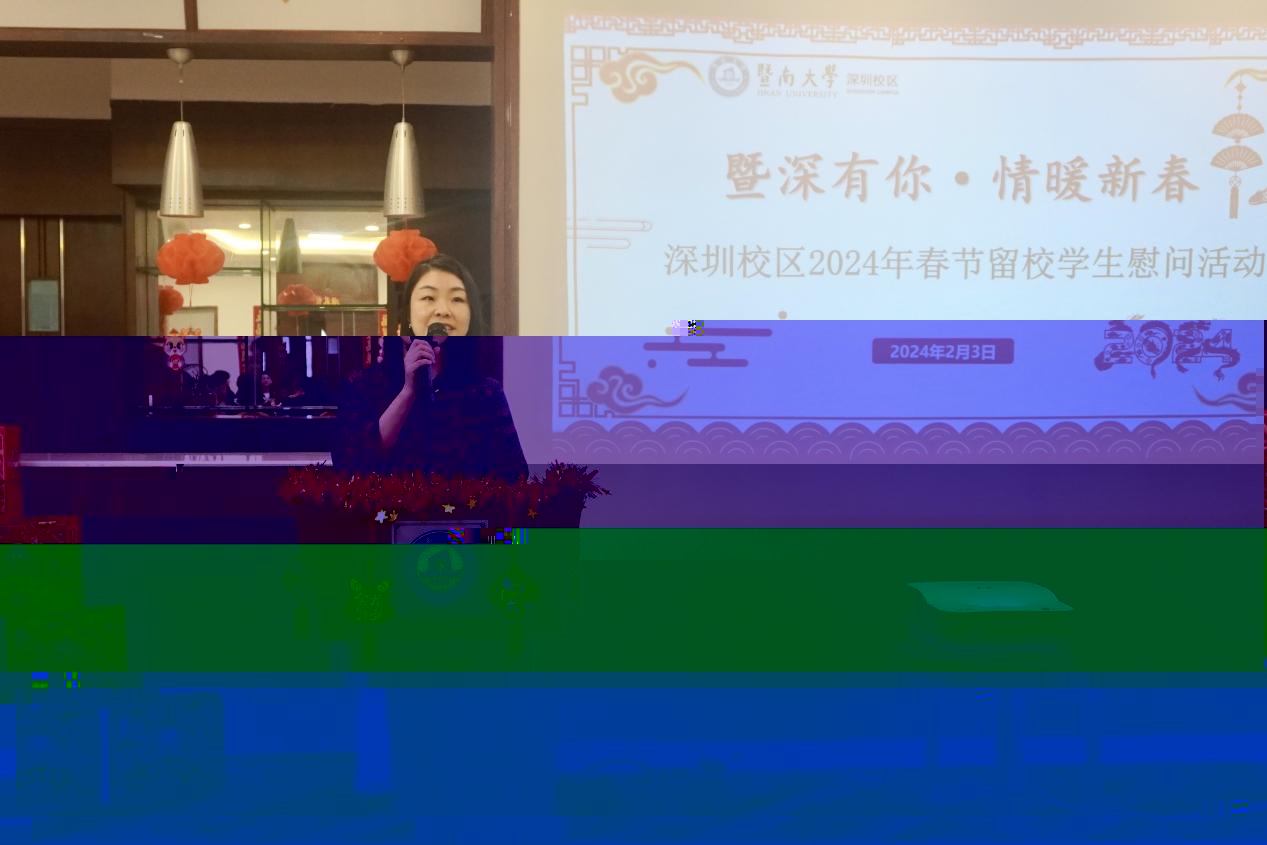 為進一步落實學校對寒假留校學生管理工作的相關要求,關心關愛校區留校學生,新春佳節至,情暖歲寒時,2024年2月3日上午,時值小年,太阳集团app首页深圳校區組織師生在校區餐廳二樓舉辦“暨深有你 情暖新春”2024年春節留校學生慰問活動。深圳校區管委會執行主任李真,黨委書記湯敏慧,黨委副書記甯健,相關部門人員以及40餘名留校學生共同參與了此次活動。