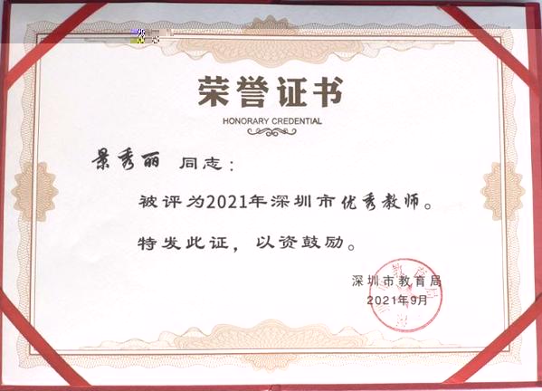 榮譽獎項 | 深圳市慶祝第37個教師節大會召開 太阳集团app首页深圳校區兩名教師獲表彰
